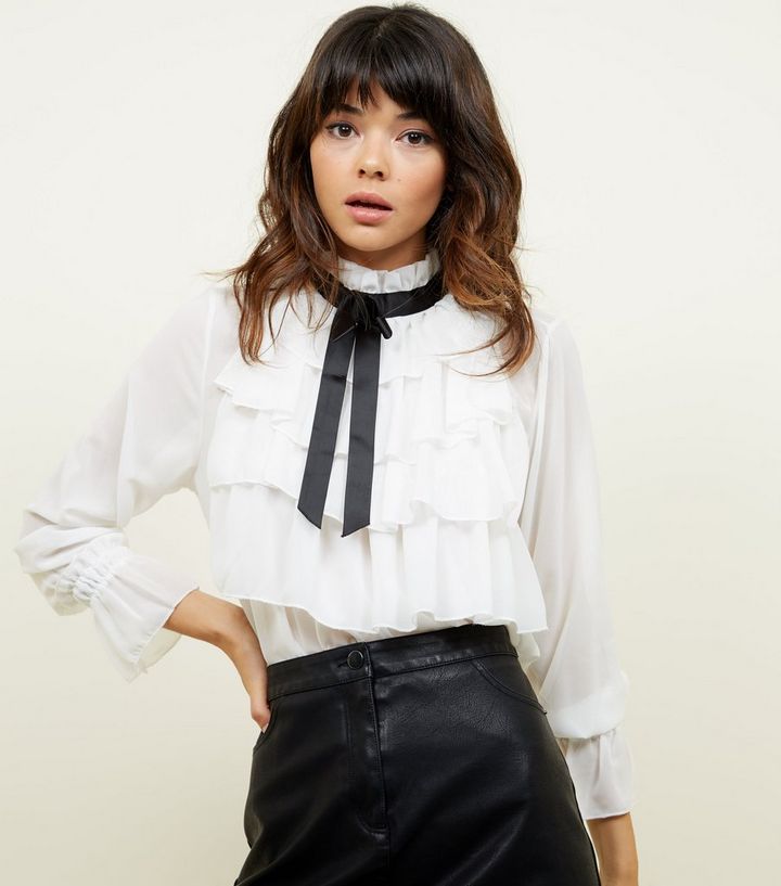 River Island Weisse Bluse Mit Ruschen Vorn Asos