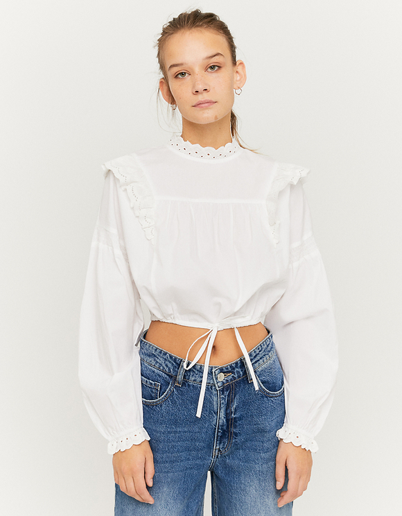 Weisse Bluse Mit Stickerei Ruschen Und Stehkragen New Look