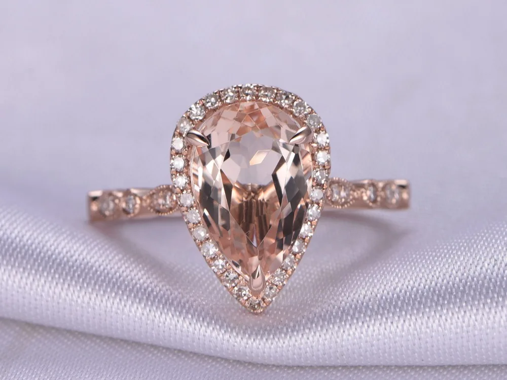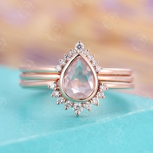 Morganit Verlobungsring Vintage Rotgold Ehering Set Frauen Diamond Curved Band Birnenfor Band In Morganit Verlobungsring Ring Verlobung Verlobungsring