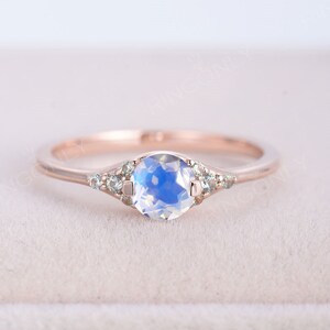 Mondstein Verlobungsring Rotgold Einzigartiger Verlobungsring Vintage Zarte Moissanite Diamant Hochzeit Ring Verlobung Verlobungsring Mondstein Verlobungsring