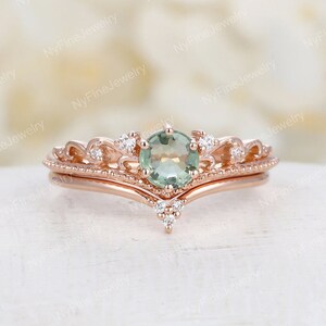 Vintage Engagement Ring Oval Moissanite Engagement Ring Rose Gold Diamo Moissanite Engagement Ring Rose Gold Moonstone Engagement Ring Set Rose Engagement Ring