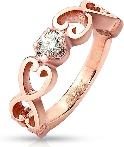 Bungsa Ring 6 Herzen Mit Kristallstein Rosegold Rotgold Fur Damen Vintage Ring Fingerring Partnerringe Verlobungsringe Trauringe Damenring Edelstahlring Chirurgenstahl Amazon De Bekleidung