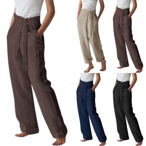 Damen Unifarben Leinenhose Weites Bein Freizeithose Stoffhose Lange Schnuren Ebay