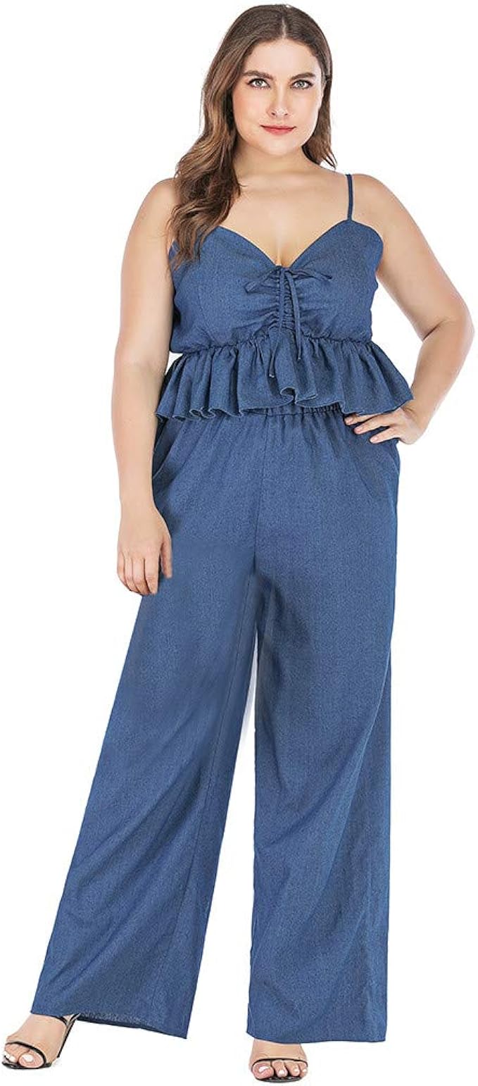 Wozow Damen Weites Bein Hosen Vests Sets Solid Deep V Neck Ruschen Long Stoffhose Ubergrosse Amazon De Bekleidung
