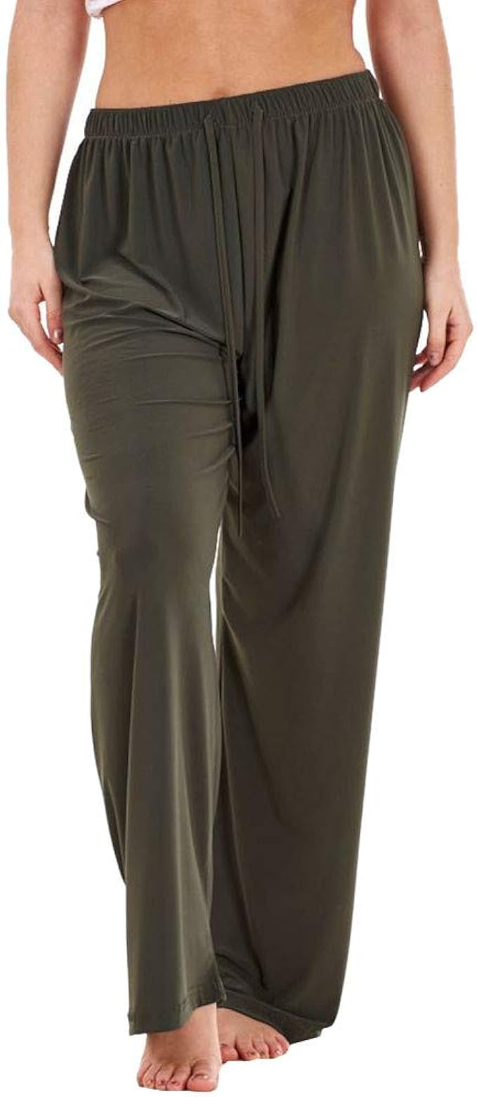 Wozow Weites Bein Hosen Damen Solid Lose Long Soft Comfy Stoffhose Amazon De Bekleidung