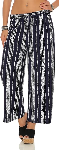 Zarmexx Fashion Damen Hose Leichte Sommer Freizeithose Marlenehose Gestreifte Stoffhose Weites Bein Hc701 Amazon De Bekleidung