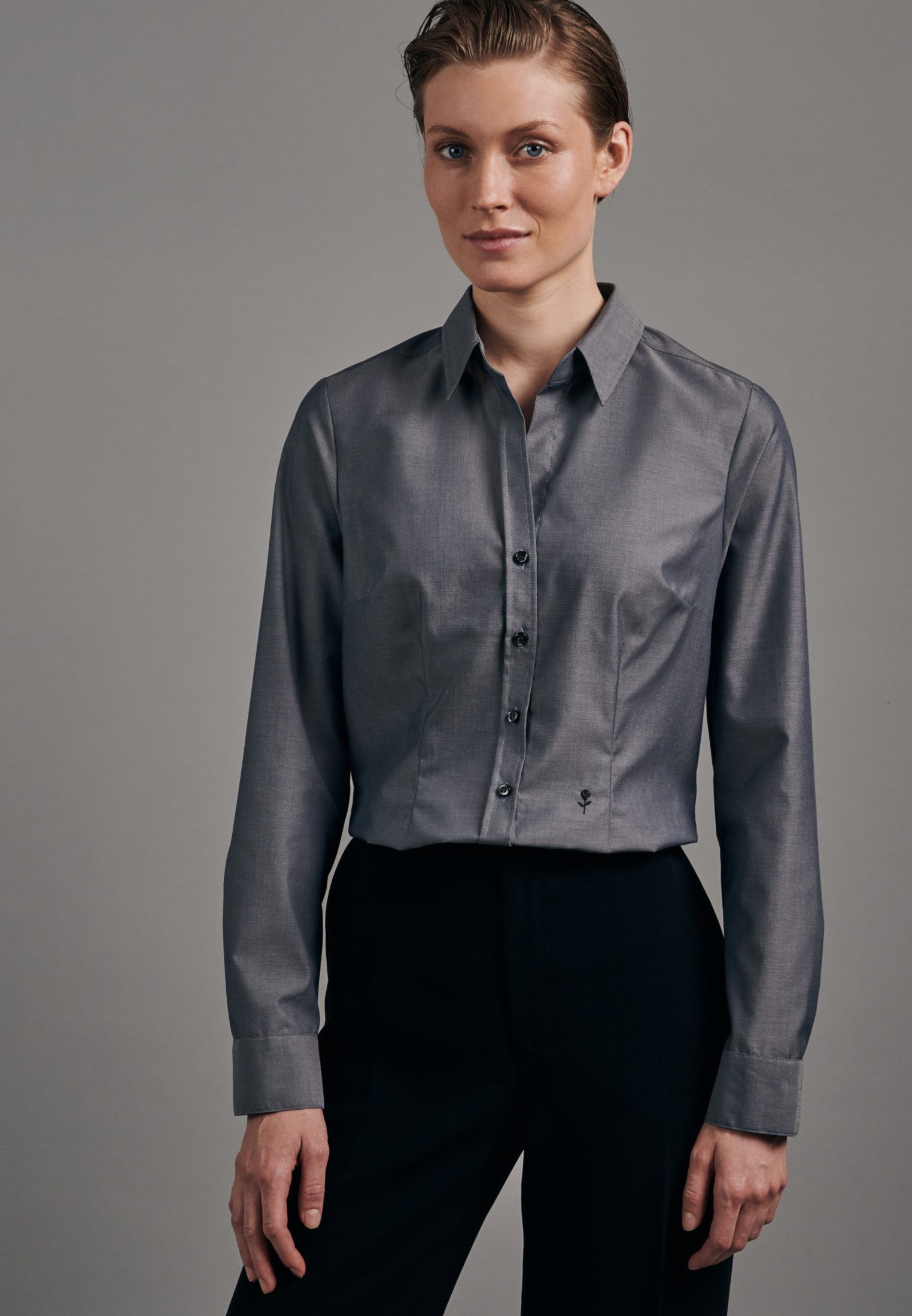 Damen Bugelfreie Fil A Fil Hemdbluse Aus 100 Baumwolle Grau 60 0033 Seidensticker