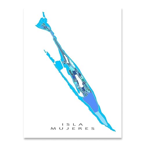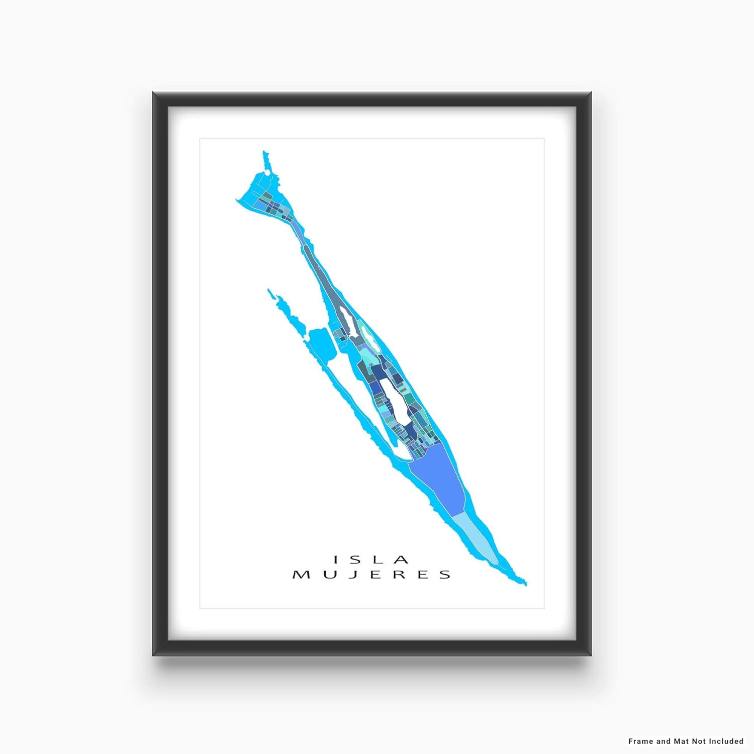Amazon Com Isla Mujeres Map Art Print Cancun Yucatan Mexico Caribbean Island Handmade