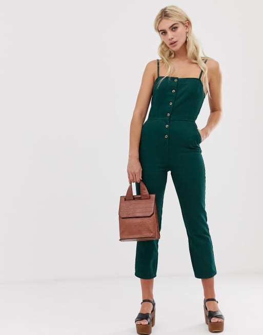 Shoptagr Asos Design Gruner Jumpsuit Aus Jeans Mit Knopfen By Asos