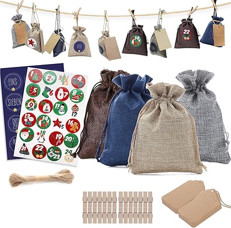DIY Adventskalender Set zum selbst Befüllen (Papiertüten mit Zahlen Aufkleber 124 und Klammer) Kalender selber basteln mit Nummern Sticker Ideen für Kinder, Frauen & Männer zu Weihnachten 10,99 €. Kesote 24x Adventskalender zum Befüllen Aufängen Weihnachtskalender Kette Filz Säckchen Kinder Weihnachten Deko Strumpf (15 x 10 cm) günstig auf Amazonde Kostenlose Lieferung an den Aufstellort sowie kostenlose Rückgabe für qualifizierte Artikel. In diesem stilvollen DIYAdventskalender findet ihr 24 Stoffbeutel (grau & rot), 24 Holzklammern, 24 ZahlenAufkleber und ein 10m Juteseil Die bunten Säckchen eignen sich ideal zum Befüllen von kleinen Geschenken, Schmuck, Süßigkeiten usw und lassen sich zu Hause problemlos aufhängen.