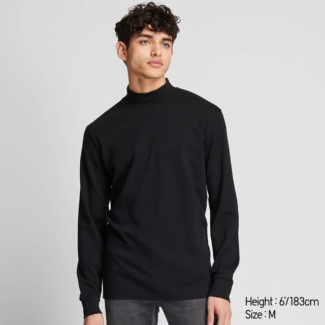 Men S Brushed Cotton Mock Turtle T Shirt In Black Sunspel