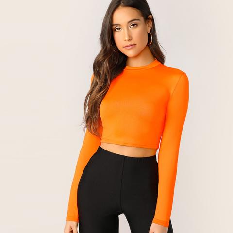 Reines Crop T Shirt Mit Stehkragen In Neon Orange From Shein On 21 Buttons