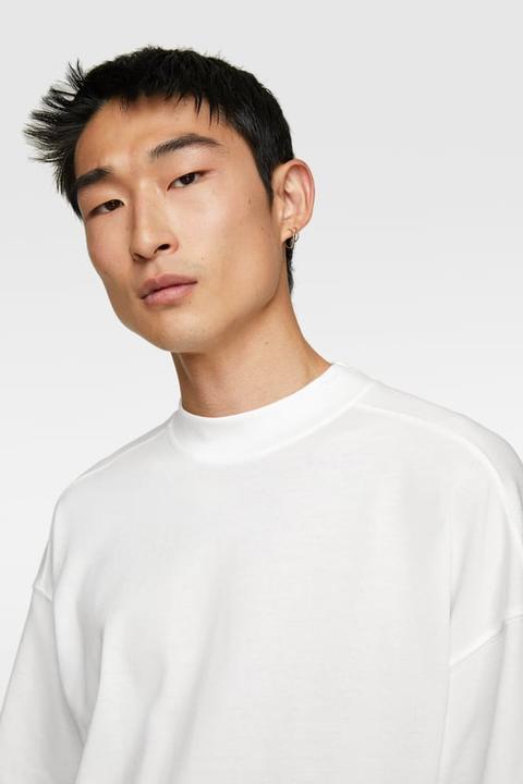 Weiches T Shirt Mit Geripptem Stehkragen From Zara On 21 Buttons
