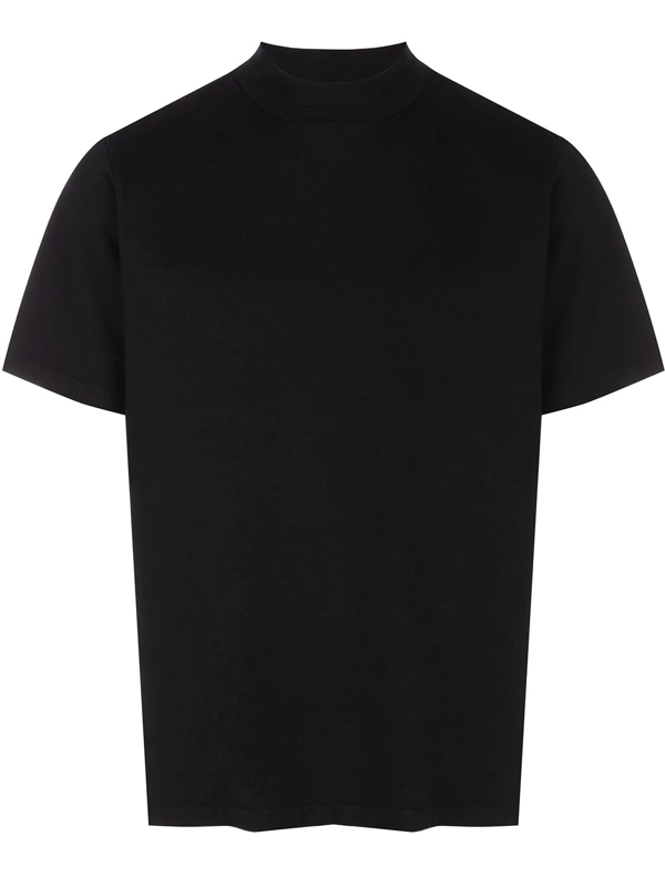 Herren Baumwolle Stehkragen T Shirt In Schwarz Sunspel