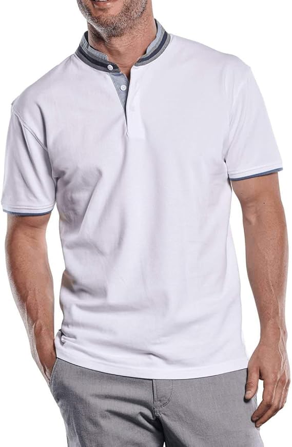 Engbers Herren Serafino T Shirt Mit Stehkragen Und Kontrastdetails Weiss In Grosse 6xl Engbers Amazon De Bekleidung