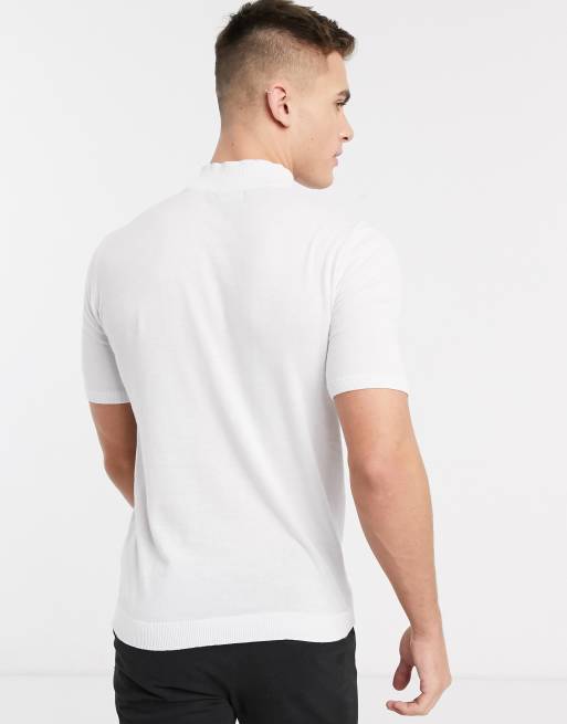 Asos Design Gestricktes T Shirt Mit Stehkragen In Weiss Asos