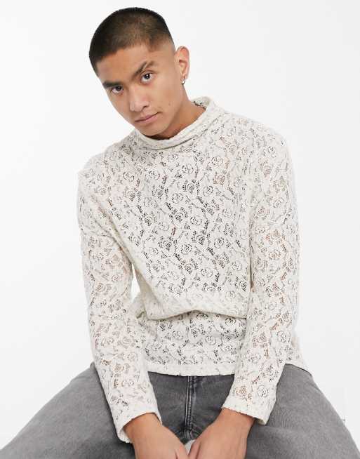 Asos Design Oversized T Shirt With Turtleneck In Sheer Inject Jersey Asos