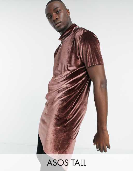 Evesham Nj Design Tall Locker Geschnittenes Superlanges T Shirt Aus Braunem Velours Mit Abgerundetem Saum Und Stehkragen Evesham Nj