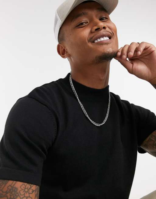 Bershka Schwarzes Strick T Shirt Mit Stehkragen Asos