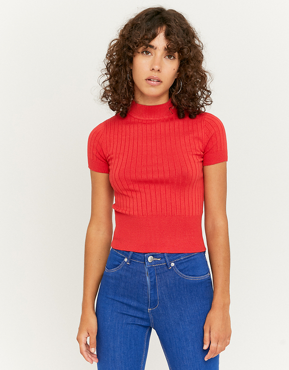 Rotes T Shirt Aus Strick Mit Stehkragen Tally Weijl Online Shop