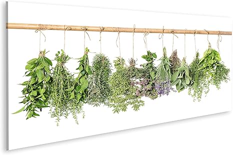 Islandburner Bild Bilder Auf Leinwand Frische Krauter Isoliert Auf Weissem Hintergrund Hangend Thymian Minze Basilikum Rosmarin Salbei Oregano Majoran Sav Wandbild Poster Leinwandbild Qbhk Amazon De Kuche Haushalt