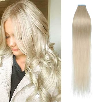 Echthaar Extensions Tape 60 Platinblond Stucke 50 Gramm 60cm Glatt Gunstig Weich Haarverlangerung Keine Clips Hochwertig Human Hair Amazon De Beauty