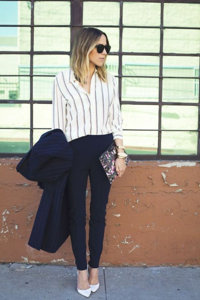 Professionelles Aussehen Farbakzente Schwarze Hose Weisse Bluse Und Hohe Tigerschuhe Business Kleider Kleidung Mode Fur Frauen