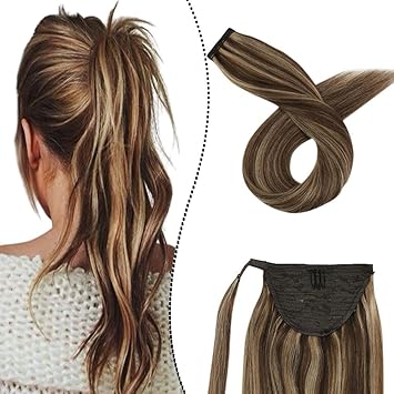 Clip In Pony 100 Remy Echthaar Remy Haarteil Easy Damen Pferdeschwanz Aus Echte Haare Wrap Around Ponytail Schokoladenbraun Klavierfarbe Karamellblond P4 27 45cm 60g Amazon De Beauty