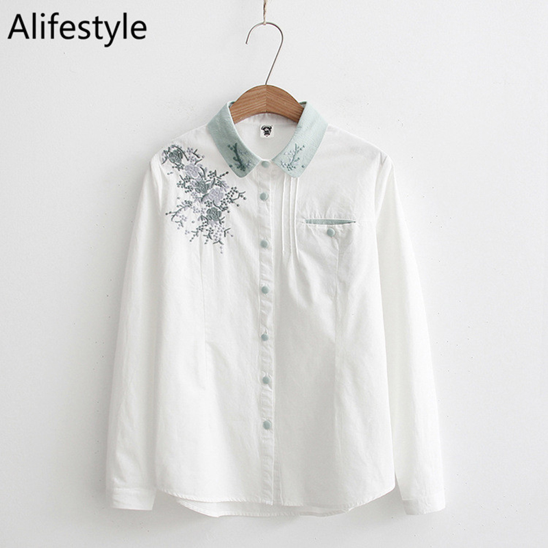 Grosshandel Fruhlings Sommer Frauen Langes Hulsen Weisses Hemd Stickerei Kragen Elegante Damen Buro Hemd Dunne Beilaufige Baumwollblusen Oberseiten Von Erindolly360b 16 43 Auf De Dhgate Com Dhgate