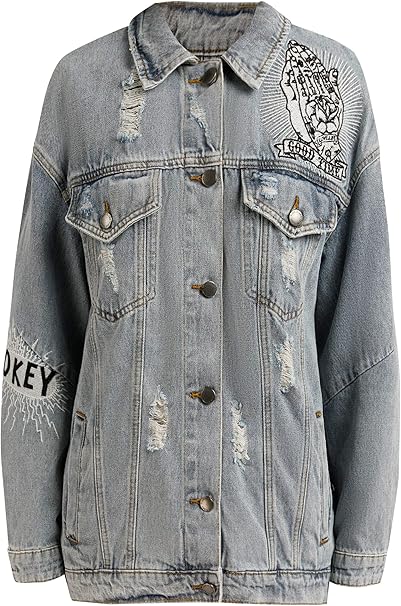 Hx Fashion Damen Jeansjacke Oversize Madchen Mit Patches Zerissen Vintage Elegant Denim Jacken Herbst Winter Hellblau Langarm Revers Ripped Locher Boyfriend Casual Outwear Jacket Mantel Amazon De Bekleidung