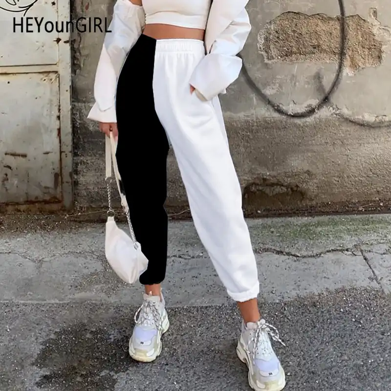 Heyoungirl Patchwork Schwarz Weiss Casual Jogginghose Frauen Mode Hohe Taille Harem Hosen Capirs Herbst Harajuku Jogger Hosen Hosen Caprihosen Aliexpress