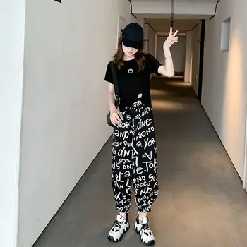 Houzhou Sommer Graffiti Drucken Jogginghose Frauen Streetwear Fashion Baggy Frauen Hosen Drucken Hip Hop Schwarz Harem Hosen Leather Bag