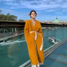 19 100 Pure Cashmere Cardigan Women Long Thick Knitwear Ladies Winter Coat Solid Open Stitch Warm Plus Size Sweater Cardigans Loose Coat Pure Cashmerecoat Korean Aliexpress