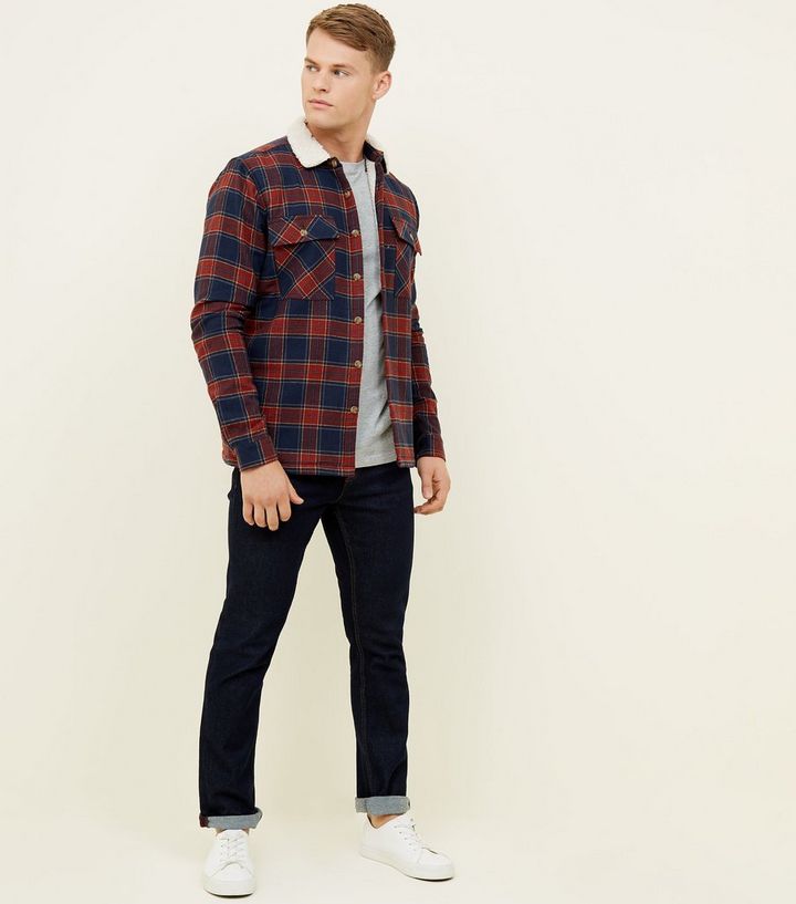 Rot Kariertes Hemd Mit Borg Kragen Und Futter New Look