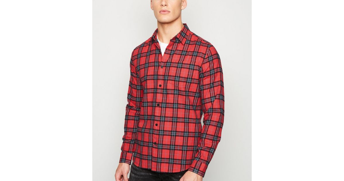 Rot Kariertes Langarmliges Hemd New Look