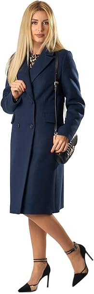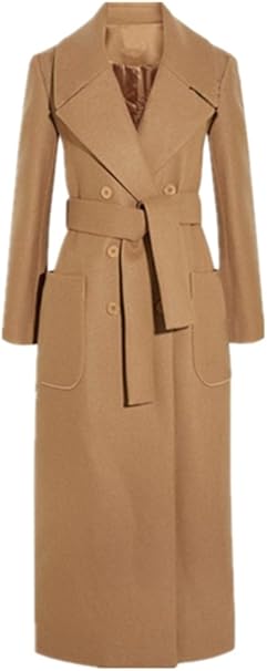Damen Zweireihiger Langer Mantel Aus Wolle Mit Innenfutter Amazon De Bekleidung
