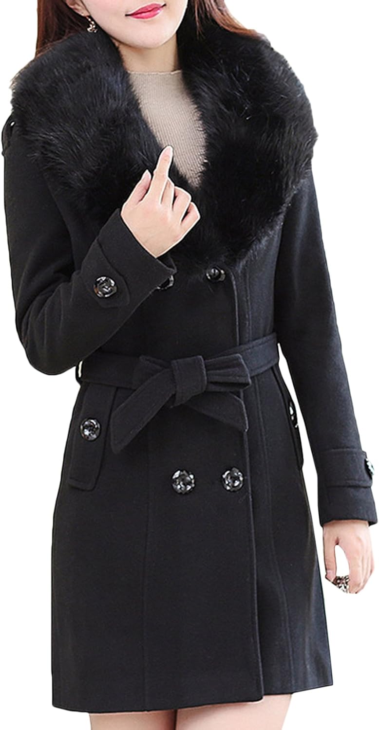Foluton Damen Wintermantel Wollmantel Mit Faux Pelz Kragen Parka Herbstjacke Elegant Zweireihiger Trenchcoat Lang Mantel Ubergangsjacke Du Coat Peacoat Clothes