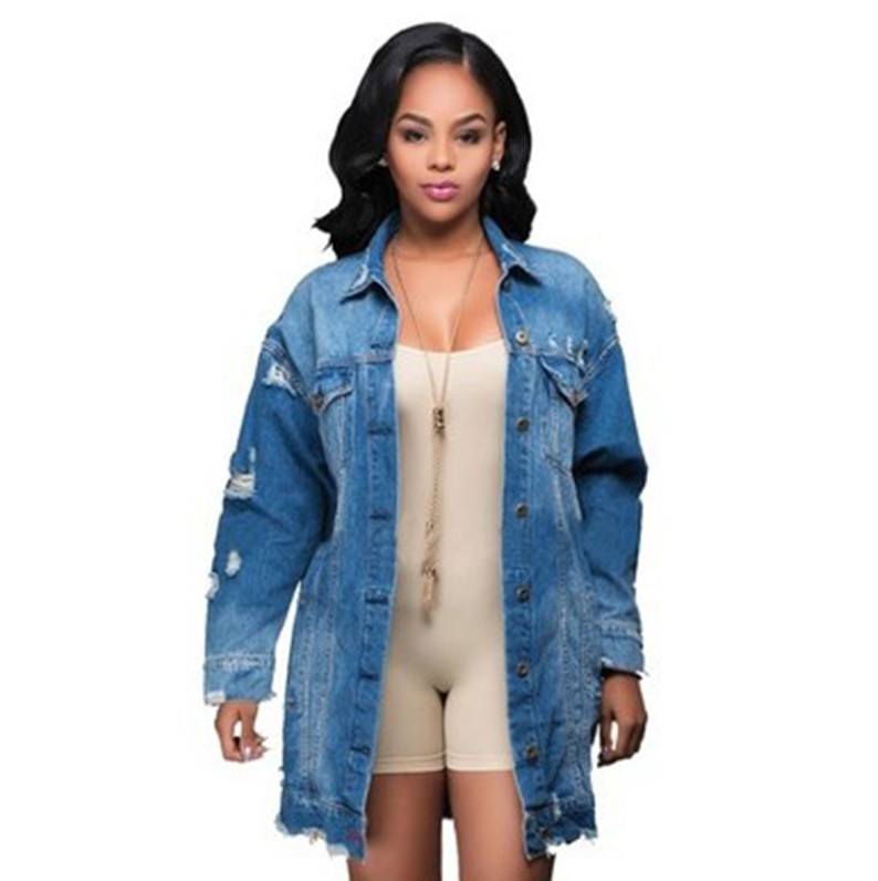 Damen Jacken Gjkk Damen Mode Lassig Langarm Jeansjacke Lang Zweireihiger Mantel Denim Mantel S 4xl Amazon De Bekleidung