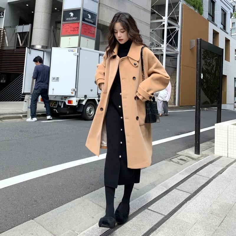 Jspoyou Womens Double Breasted Woolen Coat Winter Lapel Wool Coat Button Trench Jacket Loose Plus Ov Wintermantel Damen Damen Trenchcoat Oberbekleidung Frauen