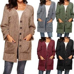 Damen Winter Warme Freizeit Teddyfell Strickjacken Lang Mantel Outwear Taschen Ebay