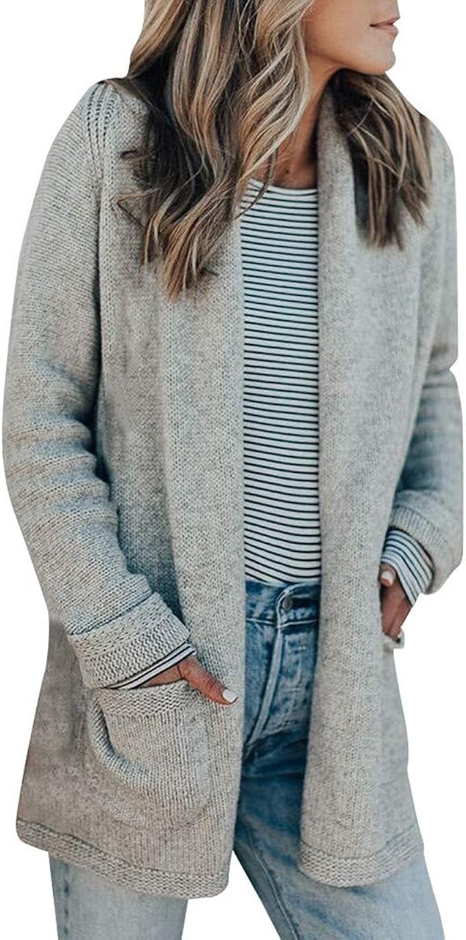 Grau Taschen Fluffy Lassige Warme Cardigans Damen Strickjacke Lang Mantel Jacke Oberteile