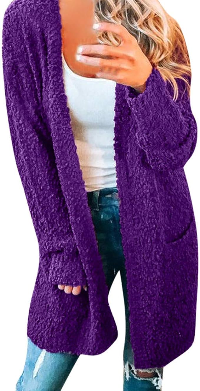 Fansu Damen Langarm Strickjacke Cardigan Herbst Winter Warme Gestrickt Freizeit Lang Blazer Pullover Mantel Jacke Elegant Lose Strickpullover Mit Tasche S Lila Jetzt Unschlagbar Gunstig Shopping24 De