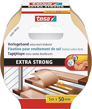 Tesa Verlegeband Extra Stark Klebend Doppelseitiges Klebeband Zum Verlegen Von Teppich Und Pvc Belag Doppelseitig Klebend 5 M X 50 Mm Amazon De Baumarkt