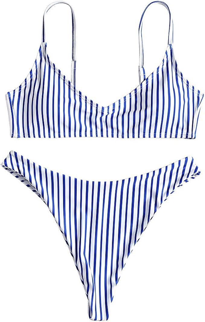 Zaful Damen Push Up Spaghetti Tragern High Cut Striped Tanga Bikini Set Badeanzug Bademode Amazon De Bekleidung