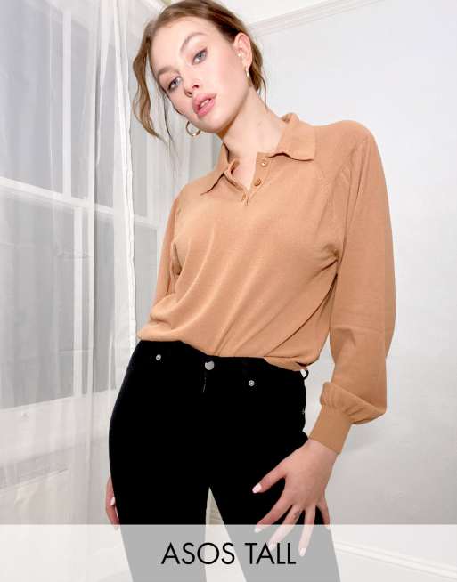Evesham Nj Design Tall Pullover Mit Kragen Und Voluminosen Armeln In Camel Evesham Nj