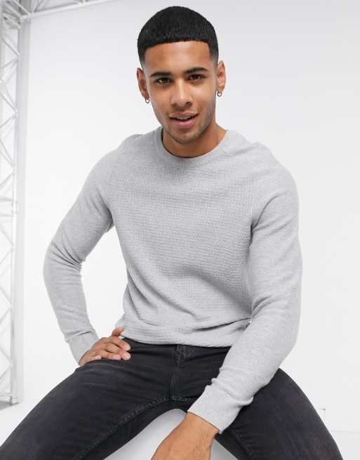 Jack Jones Premium Strukturierter Pullover In Grau Evesham Nj