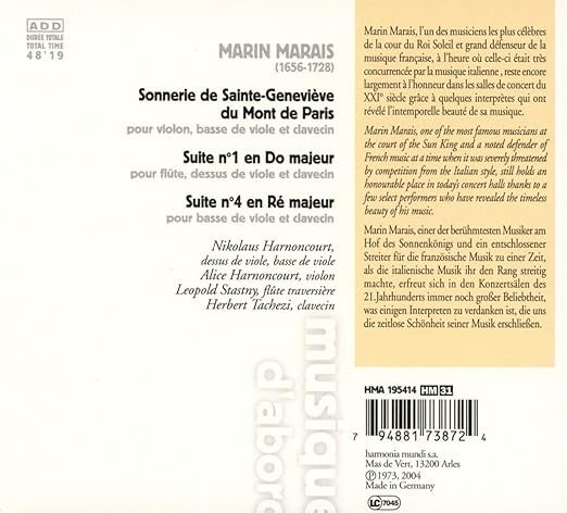 Marin Marais Nikolaus Harnoncourt Leopold Stastny Herbert Tachezi Marais La Sonnerie De Sainte Genevieve Du Mont Amazon Com Music