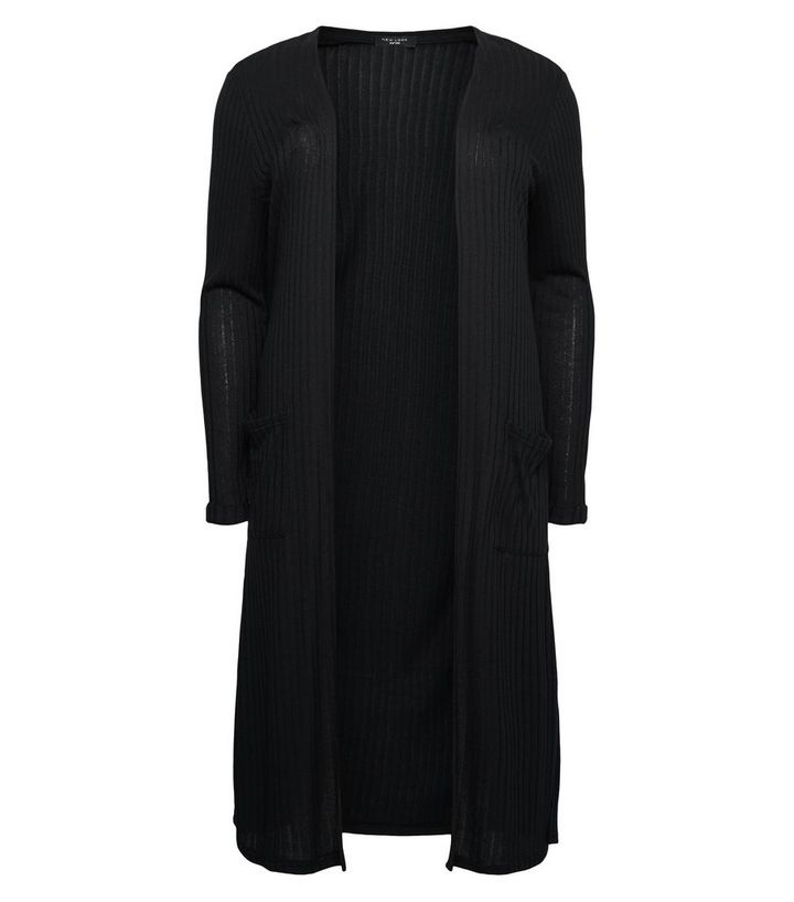 Curves Lange Schwarze Strickjacke Mit Rippenmuster New Look