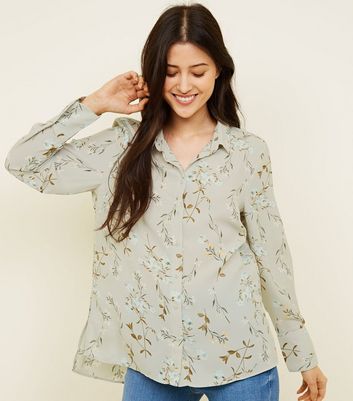 Petite Grunes Hemd Mit Blumenmuster New Look