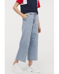 Shop 48 top H&M Women's Wide Leg Pants and earn Cash Back from retailers such as H&M all in one place Also set Sale Alerts and shop Exclusive Offers only on ShopStyle. Cut a new silhouette in a striking pair of wide leg jeans Choose high waisted flared jeans for a vintage vibe, or experiment with cropped culotte styles that will work for any occasion Balance out a wide long leg length with a formfitting top Shop our selection of the best wide leg jeans for women online now. 5pocket jeans in washed cotton denim with worn details Slightly looser fit with a high waist and wide, straight legs Some of the cotton content of the je.
